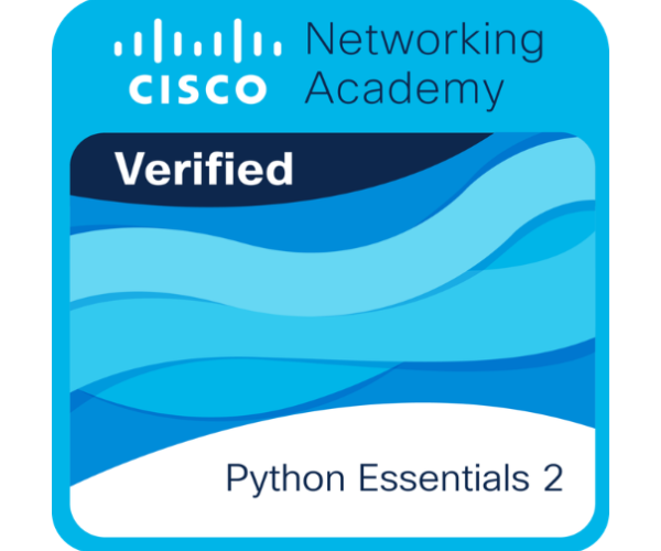 Cisco Networking AcademyExtended Python knowledge with modules, packages, file handling, exceptions, OOP basics, and more structured programming practices.